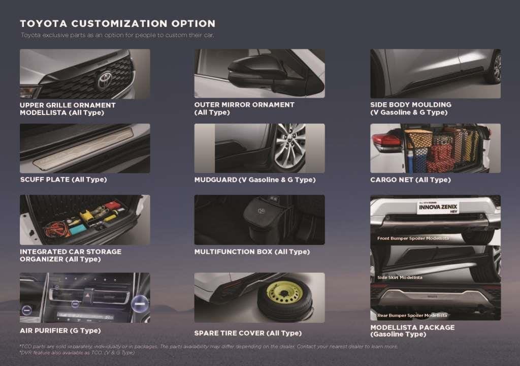 Pada bagian luar innova zenix ada beberapa bagian yang dapat di highlight seperti hadirnya New Crossover Front Looks, New Captivating 16″ Alloy Wheel dan New Stunning LED Headlamp yang membuat tampilan mobil ini terlihat semakin modern dan tentunya menunjukan kemewahannya.